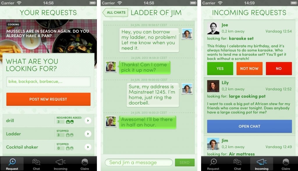 On Peerby, users post requests for items that they need from their surrounding community, rather than just offering up a list of available “inventory” based on what they owned and are willing to share, the way it works on other networks that have attempted similar things in the past like Neighborgoods and StreetLend.